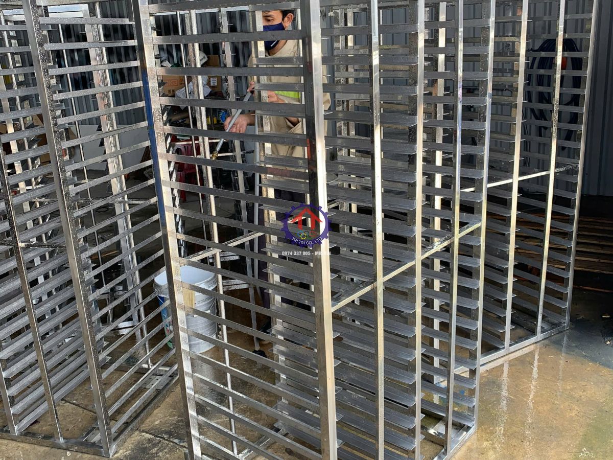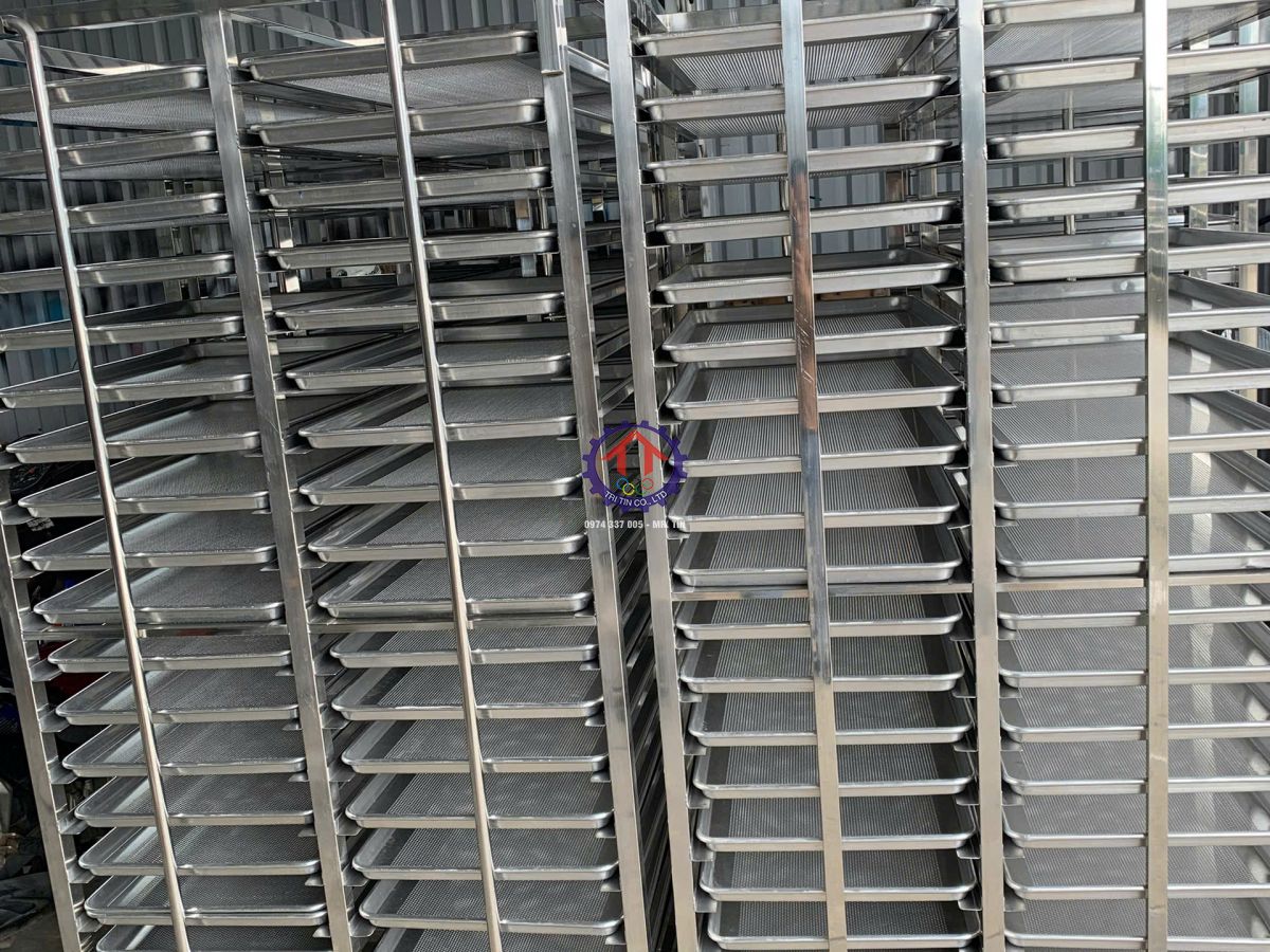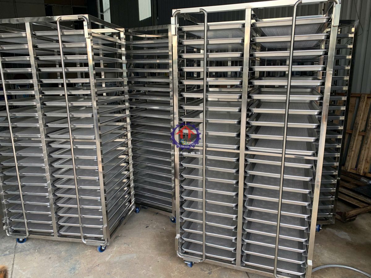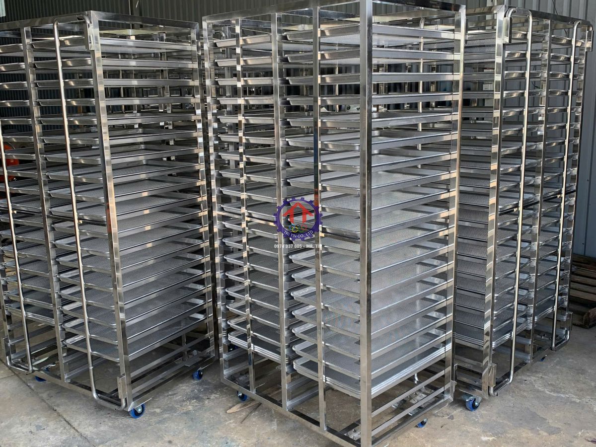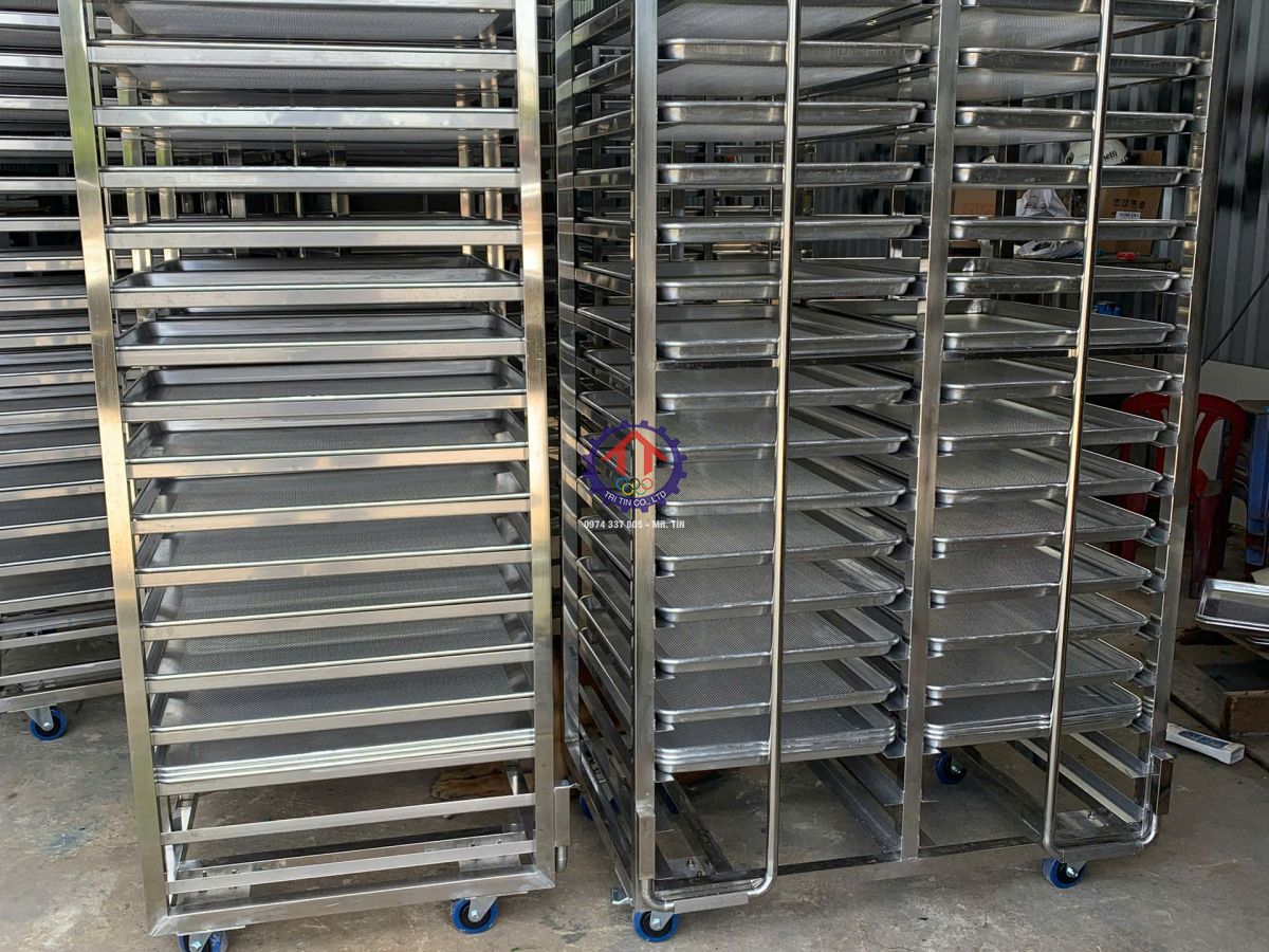 Xe đẩy khay lò nướng là thiết bị phụ trợ quan trọng trong các cơ sở sản xuất bánh, thực phẩm và bếp công nghiệp, giúp vận chuyển khay nướng nhanh chóng, an toàn và đồng bộ với quy trình vận hành. Sản phẩm được gia công từ inox chất lượng cao, kết cấu chắc chắn, chịu nhiệt tốt và dễ vệ sinh, phù hợp làm việc trong môi trường nhiệt độ cao. Thiết kế linh hoạt theo kích thước khay và lò nướng, bánh xe chịu tải giúp di chuyển êm ái, góp phần tối ưu thao tác, giảm nhân công và nâng cao hiệu quả sản xuất.